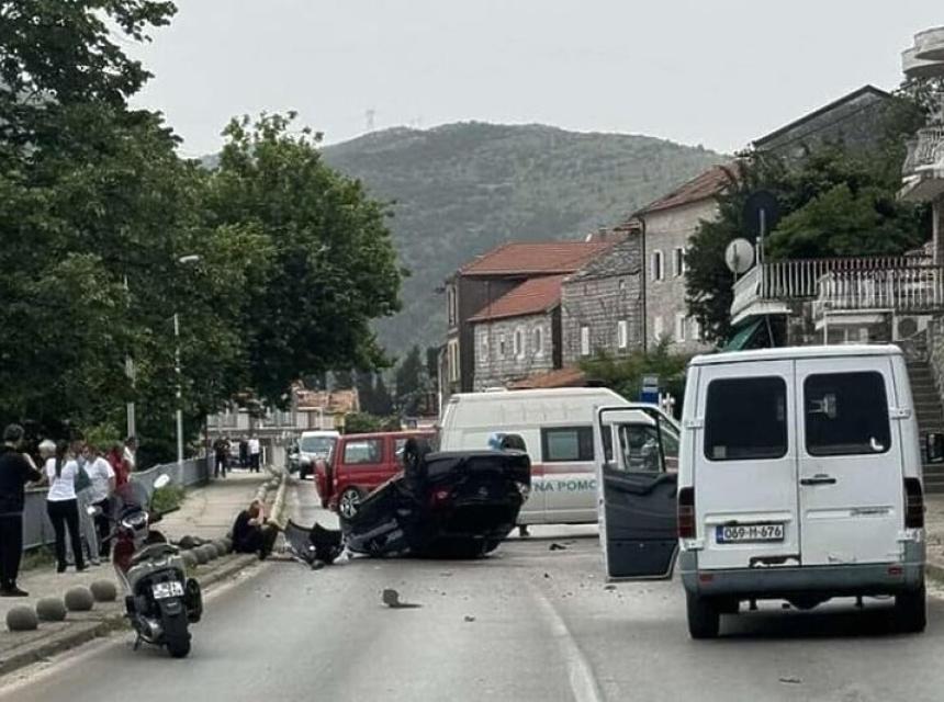 Iz Policijske uprave Trebinje je rečeno da je do saobraćajne nesreće došlo u 15:30 sati, u ulici Vuka Mićunovića. U nesreći je učestvovalo vozilo marke Opel Corsa, a automobil se prevrnuo na krov.
