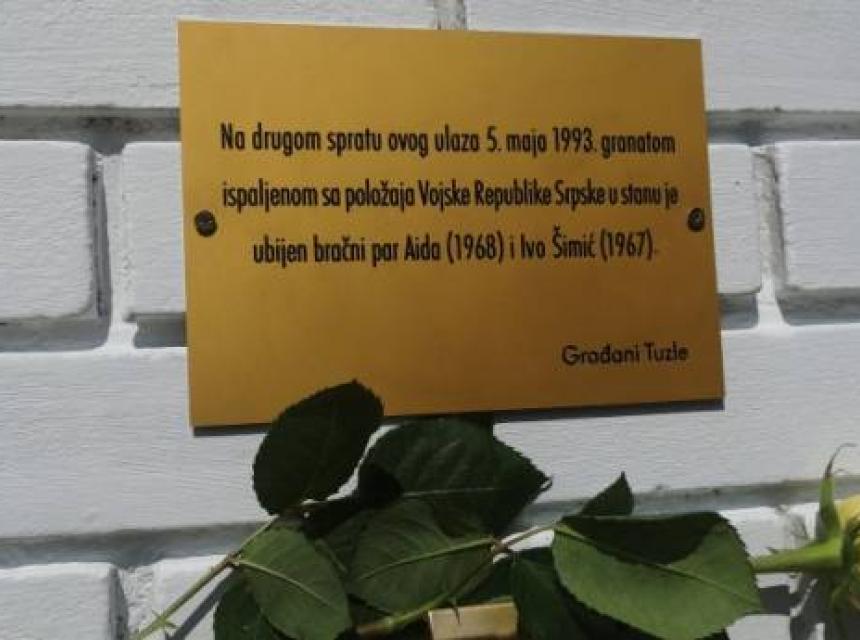 U Tuzli je danas otkrivena memorijalna ploča u znak sjećanja na nedužno ubijene civile 1993. godine, supružnike Aidu i Ivu Šimića. Njih dvoje su smrtno stradali u svom stanu u tuzlanskoj ulici Stupine, a njihov tada četverogodišnji sin Alen je teško ranjen.