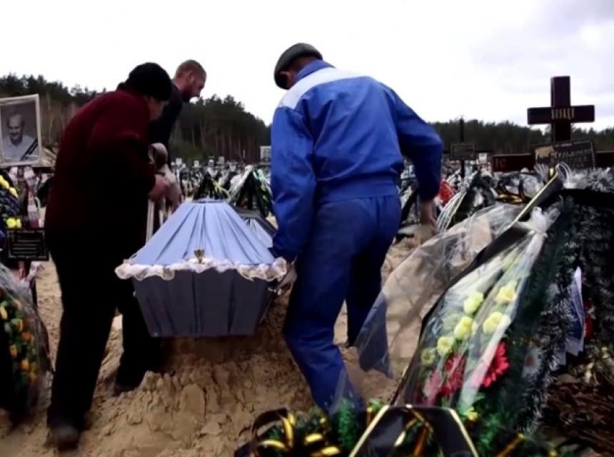 Na groblju u predgrađu Irpina iskopani su deseci novih grobova i prekriveni vijencima.