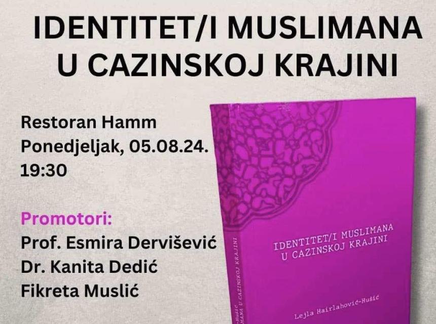 Udruženje "Sutra je novi dan" i Fondacija "Lejla Hairlahović-Hušić" vas pozivaju na promociju knjige "Identitet/i muslimana u Cazinskoj krajini," koja će se održati sutra, 5. augusta, u restoranu Hamm, s početkom u 19:30 sati.