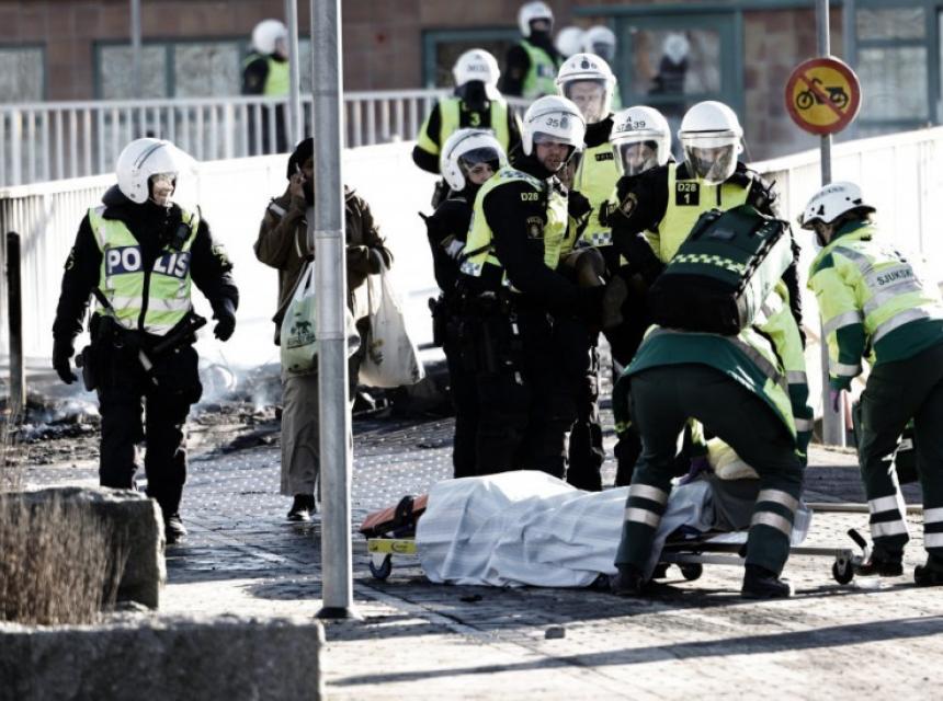 Tri osobe ranjene su u nedjelju u žestokim okršajima u Norkopingu (Norrkopingu), jugozapadno od Štokholma (Stockholma), između policije i učesnika protesta koji su protestovali protiv manje stranke krajnje desnice koja planira javno spaliti Kur'an, saopćila je švedska policija.