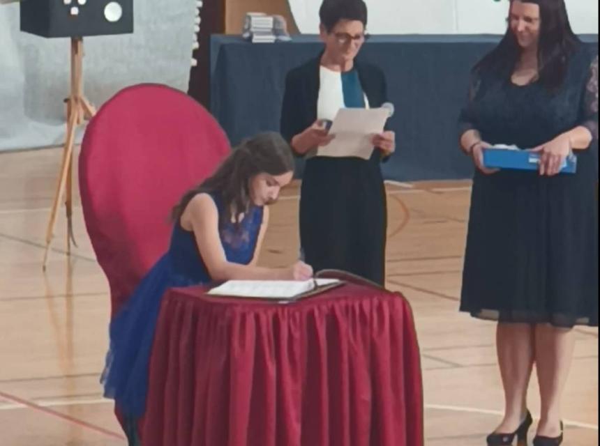 U knjigu Zlatnih učenika upisala se i učenica Nadija Vikić, koja je, sa roditeljima i mlađom sestrom Lamijom, počela živjeti u Sloveniji prije dvije godine.