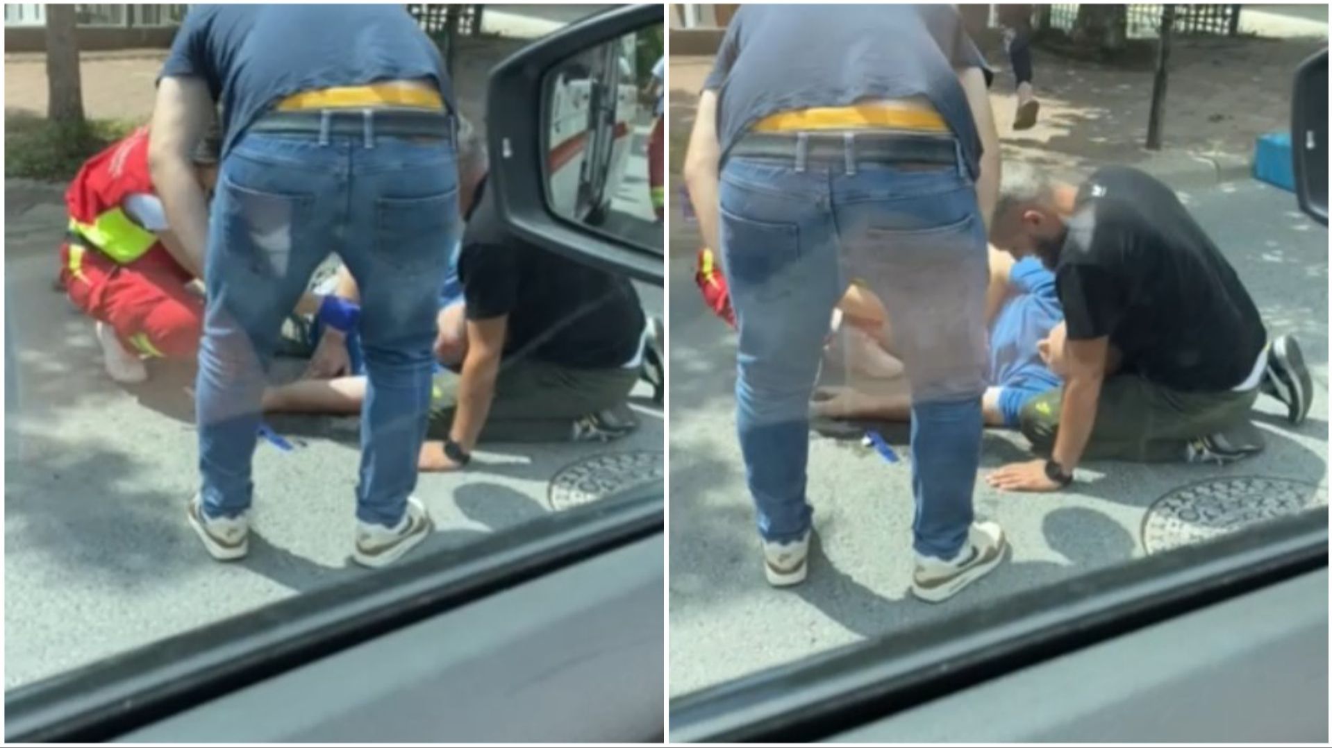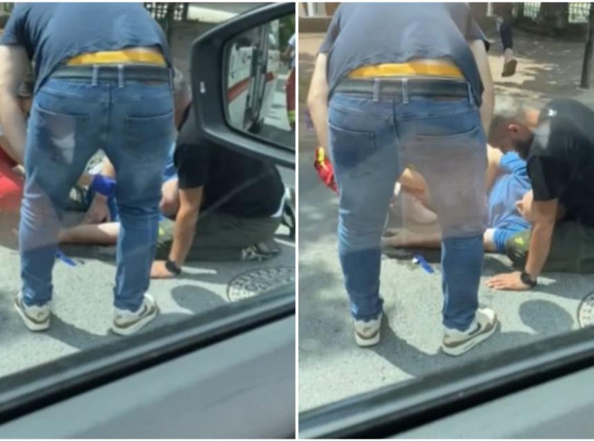 Kako je moguće vidjeti muškarac nepomično leži na betonu, dok mu se ukazuje pomoć. Stepen povreda nije poznat.