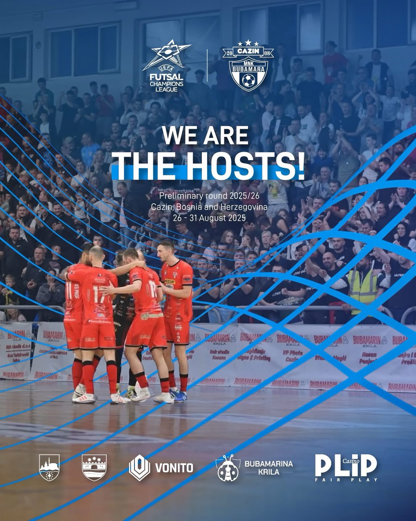 Grad Cazin i MNK Bubamara bit će domaćini Preliminarne runde UEFA Futsal Lige prvaka koja će se održati od 26. do 31. augusta 2025. godine. Ovu sjajnu vijest danas je potvrdila krovna kuća evropskog fudbala – UEFA.