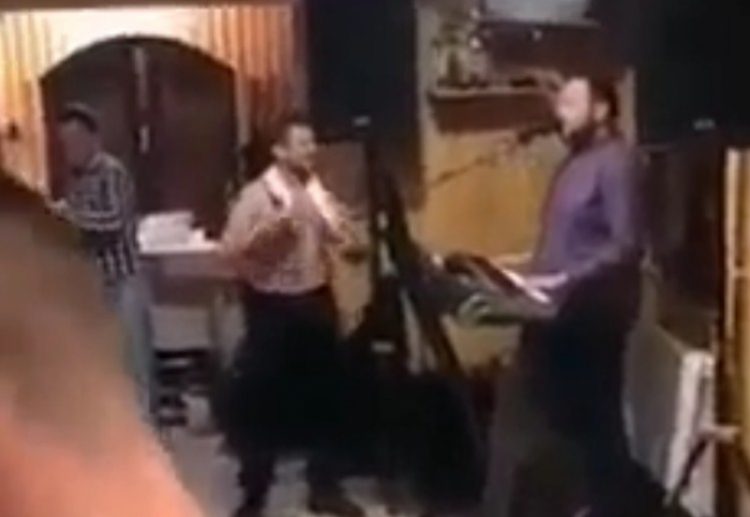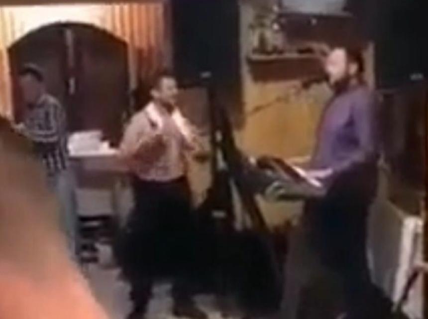 Kako se vidi na snimku, grupa muškaraca, golih do pasa, uz alkohol i muziku uživo slave, nakon čega u prostoriju upada muškarac sa mitraljezom, te uz povike “gasi muziku!” puca.