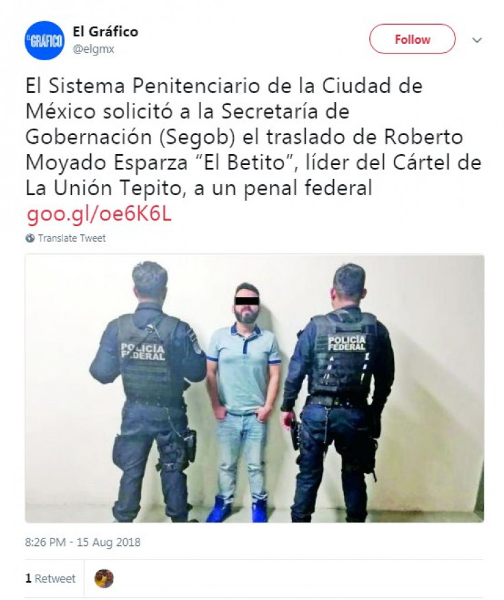 Narko-bos Roberto Mojado Esparza ( Roberto Moyado Esparza), poznatiji kao El Betito, išao je na ugradnju kose i smanjenje želuca, ne bi li zavarao vlasti koje su stezale obruč oko njega.