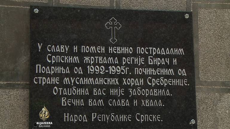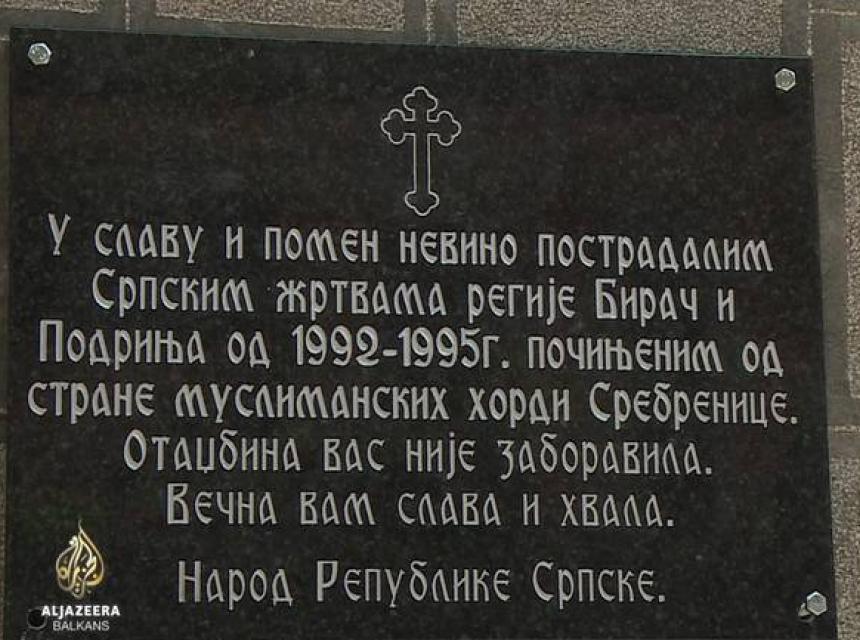 Na ploči je, između ostalog, pisalo da je "postavljena u slavu i spomen nevino stradalim srpskim žrtvama koje su počinile muslimanske horde Srebrenice".