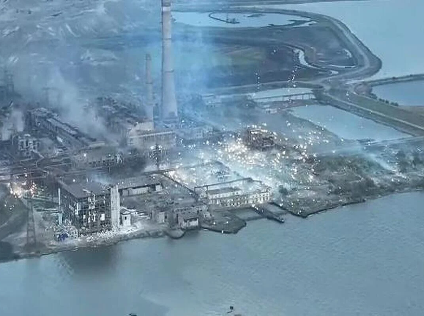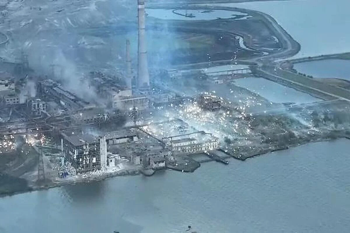Ukrajinski dužnosnici tvrde da se na snimku vidi kako ruske snage bacaju zapaljive i fosforne bombe 9M22S na čeličanu - koje izgaraju na temperaturi do 2500°C.