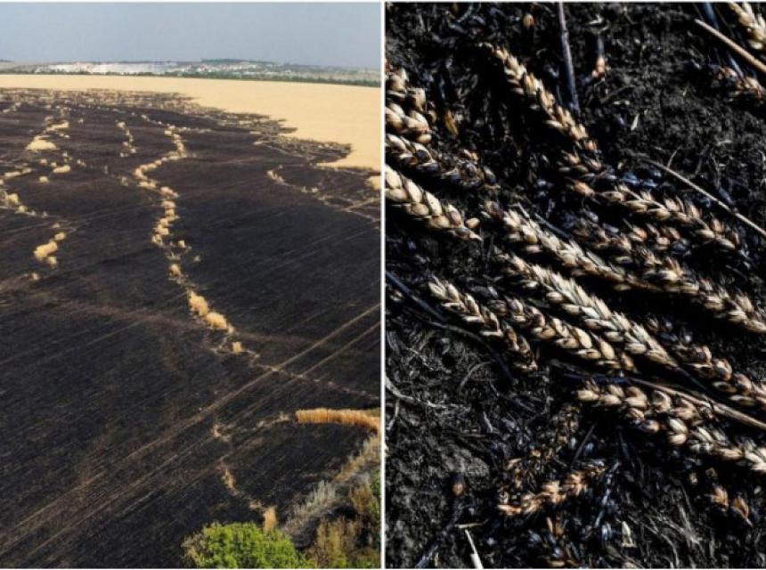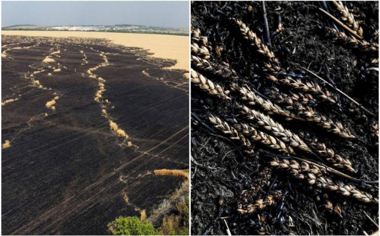 Ljetni toplotni talas i moguće namjerno gađanje ukrajinskog poljoprivrednog zemljišta dodali su zastrašujući novi element ruskoj invaziji, jer su dijelovi polja pšenice uništeni vatrom.