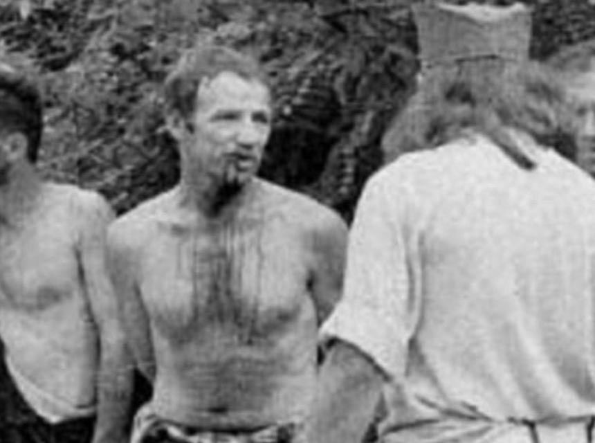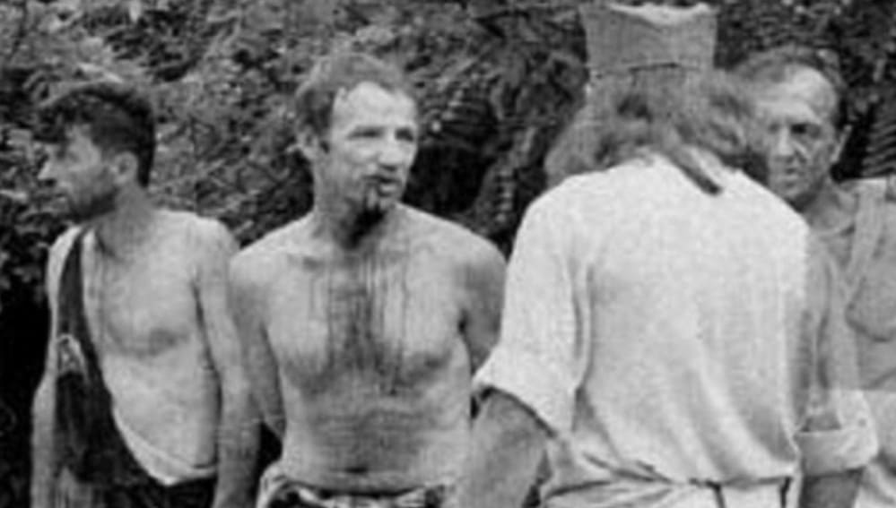Trojica pretučenih muškaraca Mensudin Karić, Ahmet Isić (u sredini, raskrvavljen) i Berz Isić, na barikadi u Karakaju, koji stoje pred ratnim zločincem Dušanom Vučkovićem, zloglasnim Repićem, pripadnikom paravojne jedinice Žute ose, fotografija je koja je svjedok zločina koji je tih dana činjen nad bosanskim muslimanima, zgrozila svijet.
