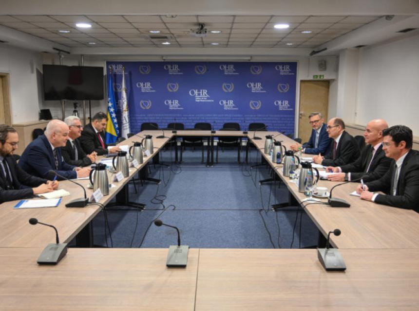 Visoki predstavnik Christian Schmidt sastao se danas sa Kyriakosom Hadjiyiannijem, potpredsjednikom Parlamentarne skupštine OSCE-a i specijalnim predstavnikom za Jugoistočnu Evropu, te šefom Misije OSCE-a u BiH Brianom Aggelerom. Primarni fokus sastanka bio je na reformama za unapređenje integriteta izbornog procesa i prioritetima neophodnim kako bi BiH započela pregovore o članstvu u EU.