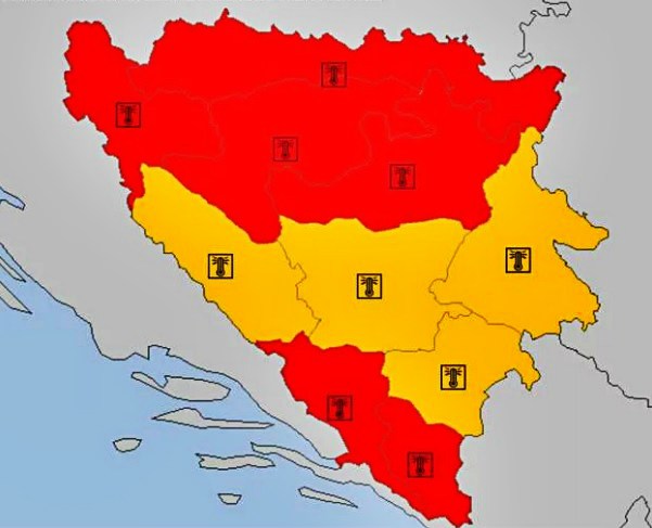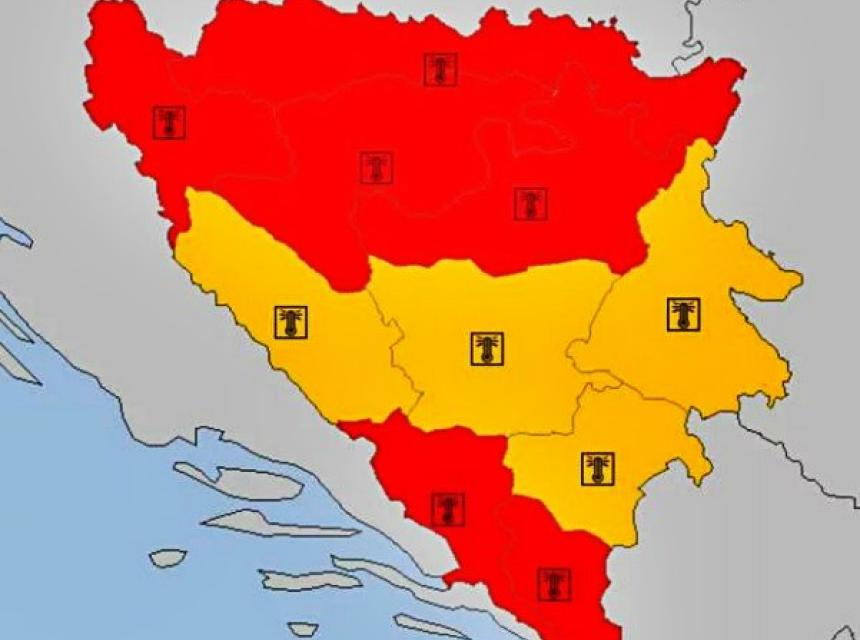 Također, evropski Meteoalarm izdao je crveno upozorenje za veći dio naše zemlje za srijedu i četvrtak.