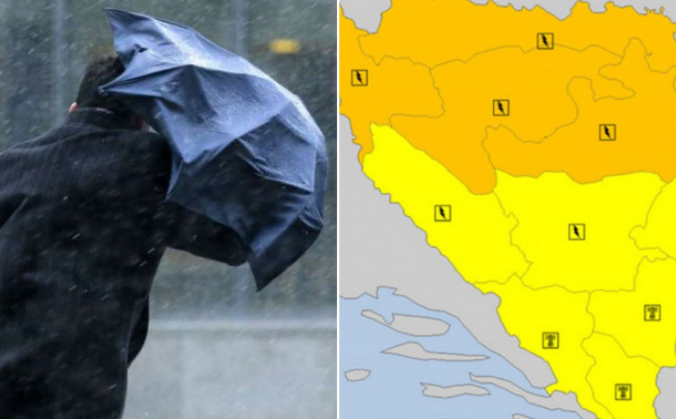 Upozorenje meteorologa traje do sutra navečer, a prognozira se da bi na ovom području moglo pasti između 30 i 50 litara po metru kvadratnom, lokalno do 70 litara.