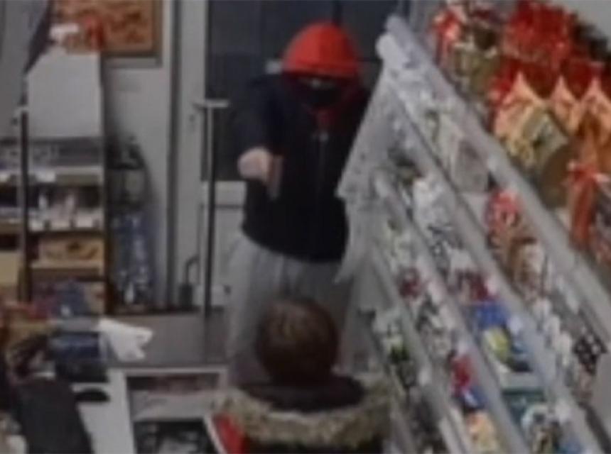 Na snimku se vidi kako pljačkaš ulazi u trgovinu maskiran. Odmah vadi pištolj, ali žena ne posustaje. U jednom trenutku stavlja lakat pod bok. To je obeshrabrilo pljačkaša.