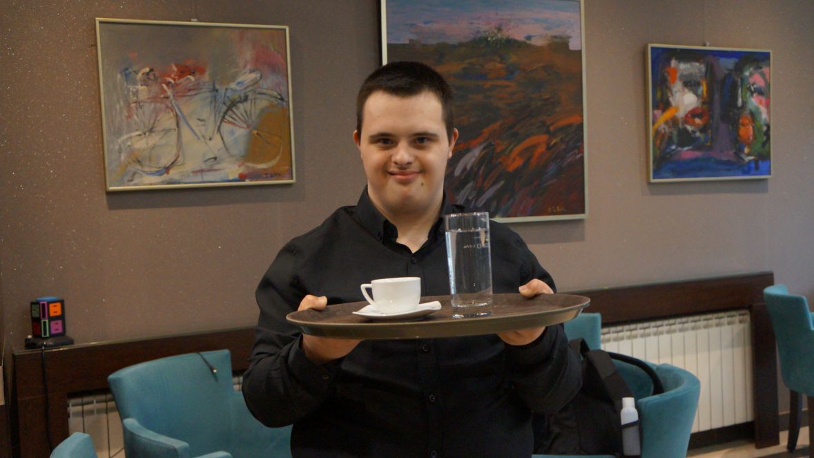U kafeteriju Multimedijalnog centra mušterije dolaze zbog svega toga, ali najviše zbog Emira Brničanina, mladića sa Down sindromom, koji je postao omiljeni konobar i koji svakom gostu uljepša dan i popravi raspoloženje.