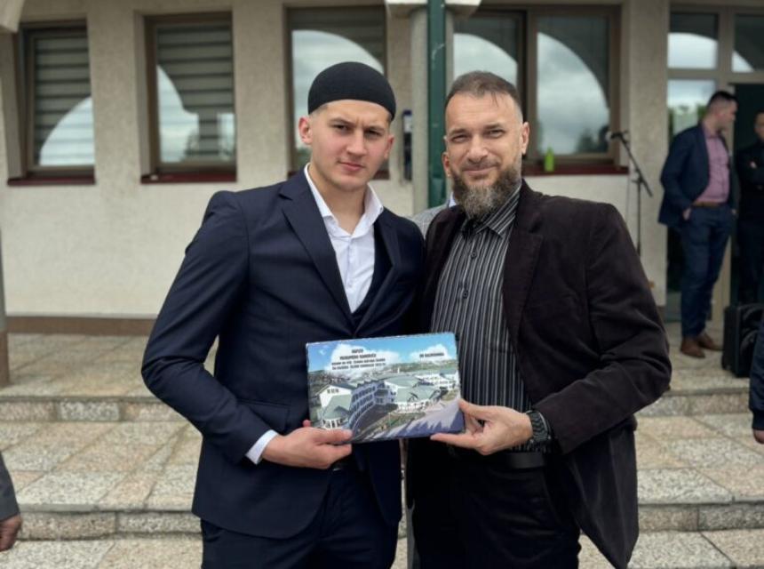 Nakon što je uz glasne tekbire dočekan u Cazinskoj medresi, uvodnu riječ održao je direktor prof. Zuhdija Handanović koji je u svom izlaganju čestitao hafizu na velikom životnom uspjehu.