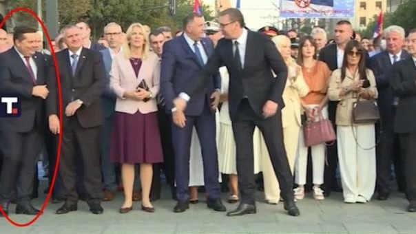 U trenutku kad im je prišao predsjednik Srbije, rukovao se sa članom Predsedništva BiH Miloradom Dodikom, predsednicom RS Željkom Cvinajović i premijerom Radovanom Viškovićem. Međutim, kad je došao red na Nenada Stevandića, Vučić je samo mahnuo, tako da je njegova ispružena ruka ostala bez stiska, piše nova.rs.