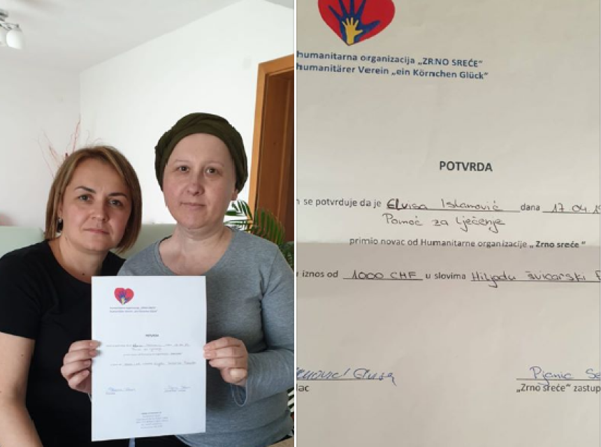 Ovaj put, vrijedna donacija u iznosu od 1.000 CHF uručena je teško oboljeloj Elvisi Islamović sa Izačića za potrebe liječenja.