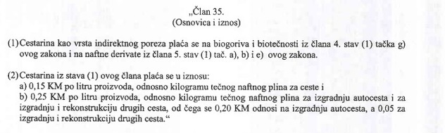 Napominje da iz zakona formalno proističe da su obje navedene tačke dvojako postavljene za finansiranje istih građevinskih objekata, i cesta i autocesta.