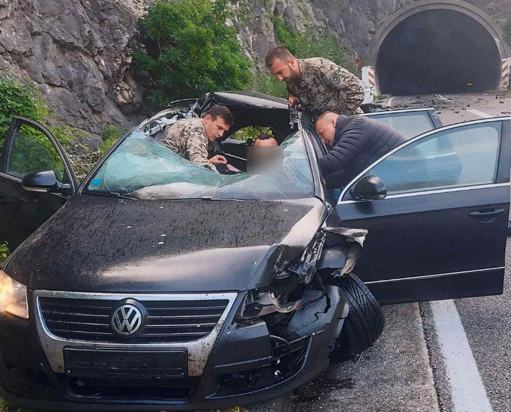 Pripadnici Oružanih snaga BiH, vodnik Asmir Tufekčija i kaplar Eldin Boloban pružili su pomoć povrijeđenim osobama nakon saobraćajne nesreće u kojoj je jutros na magistralnom putu M-17, gdje je jedna osoba poginula, a jedna povrijeđena.