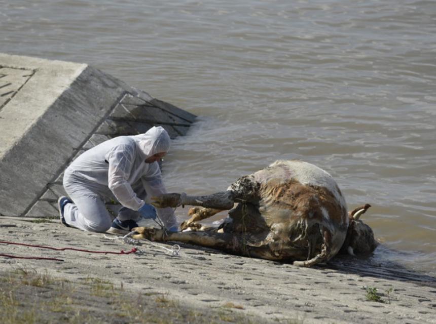 Nekoliko sati nakon što je sugrađane zabrinuo prizor na Savi, gdje je po vodi plutao nepoznati "predmet", na Dorćolskom keju u Beogradu, nedaleko od ušća Save u Dunav, rijeka je izbacila - uginulu kravu.