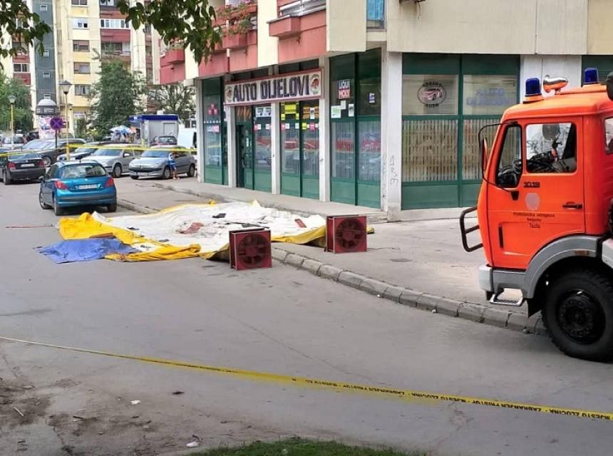 Na mjesto događaja su stigli pripadnici Profesionalne vatrogasne jedinice Tuzla. U trenucima dok su vatrogasci postavljali zračnu podlogu da bi spriječili njegovo samoubistvo, on je najprije bacio saksiju, a potom skočio u smrt.
