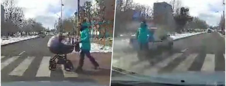 Kamera iz automobila snimila je kako vozač iz ZAZ Slavuta udara u kolica u gradu Energodar prošlog petka.