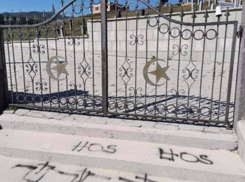 Nepoznate osobe ispisale su poruke ispred šehidskog mezarja u Prozor-Rami, saznaje "Avaz".