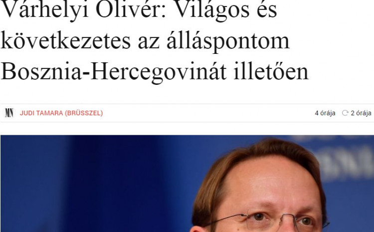 Varhelji je govorio za mađarski "Magyar Nemzet", gdje je rekao kako je njegov stav o Bosni i Hercegovini jasan i dosljedan, te da su lažni navodi oko njegovog dogovora sa Miloradom Dodikom.