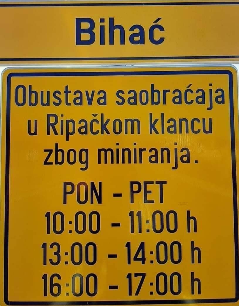 Obustava saobraćaja se odnosi na lokalitet Ripačkog klanca gdje se izvode određeni minerski poslovi.