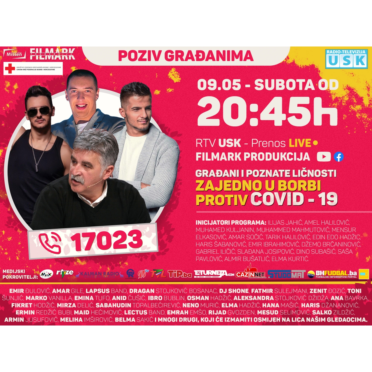 Crveni križ Federacije Bosne i Hercegovine, shodno svojoj misiji i mandatu, nedavno je pokrenuo kampanju pod nazivom „Budimo čuvari humanosti“, a u sklopu navedenog projekta Filmark produkcija inicijator je produkcije programa uživo, kojeg će obogatiti voditelji iz različitih dijelova zemlje sa najnovijim informacijama, zdravstveni radnici, naučnici, volonteri, trgovci, vozači, reprezentativci, prosvjetni radnici, ekonomisti, kao i poznate ličnosti, među kojima su: Emir Ðulović, Amar Gile, Lapsus Band, Dragan Stojković Bosanac, DJ Shone, Fatmir Sulejmani, Zenit Ðozić, Toni Šunjić, Marko Vanilla, Emina Tufo, Anid Ćušic, Ilma Karahmet, Ibro Bublin, Osman Hadžic, Aleksandra Stojković Džidža, Ana Bavrka, Ibro Bublin, Mirza Delić, Sabahudin Topalbećirević, Neno Murić, Elma Hadžić, Amar Gegić, Hana Mašić, Ermin Redžic Bubi, Maid Hećimović, Lectus Band, Emrah Emšo, Rijad Gvozden, Mesud Selimović, Salko Zildžic, Isa Balkan, Armin Jusufović, Adi Kukić, Samir Efendić, Berin Buturović, Sadik Hasanović, Sinan Sinanović, Meliha Imširović, Šaćir Ahmeti, Mladen Veselinović, Omer Berbić, Mirela Šalaka, Elmedin Eda Kadrispahić, Amir Smajić, Admir Čavalić, Faruk Hadžić, Belma Sakić, Ishak Isabegović, Adnan Jerlagić, Miralem Ramić, Amina Efendić, Kenan Cinac, Amar Džaka, Irfan Kasumović, Amila Bećirović, Maida Mulić, Bakir Nakaš, Mirsad Muftić, Namik Hodžić, Ervin Alibegović, Fikret Kubat, Mirza Šehanović, Ademir Lašetovic, Mirela Jukić, Nedim Musić, Dino Mujagić, Kenan Suljić, Mirsad Alić, Nermin Alibašić, Alida Milaku, Arian Milaku i mnogi drugi, koji ce namamiti osmijeh na lica našim gledaocima. Inicijatori programa: Ilijas Jahić, Amel Halilović, Muhamed Kuljanin, Muhammed Mahmutović,Mensur Elkasović, Amar Sočić, Tarik Halilović, Edin Edo Hadžic, Haris Šabanović, Emir Ibrahimović, Džemo Brčaninović, Gabriel Iličić, Slađana Josipović, Dino Subašić, Saša Pavlović, Almir Bušatlić, Elma Kurtić.