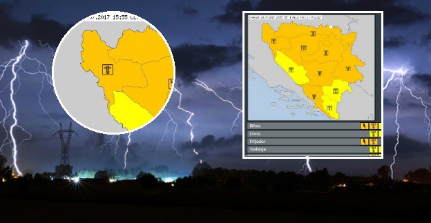 Meteoalarm je objavio narandžasto upozorenje za područja Bihaća, Sarajeva, Banja Luke i Tuzle zbog potencijalno opasnog vremena.