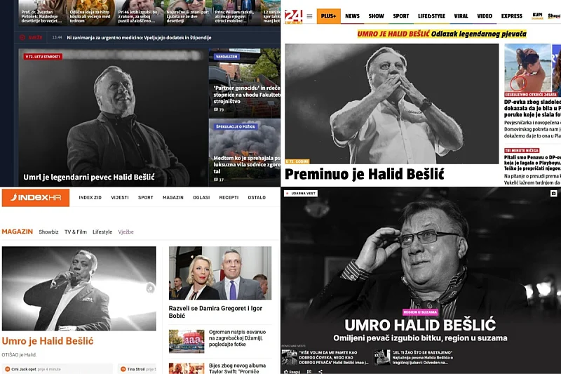 Smrt legendarnog bh. pjevača narodne muzike Halida Bešlića glavna je vijest u gotovo svim regionalnim medijima, što nesporno svjedoči o njegovoj veličini i utjecaju koji je imao i daleko van domovine.