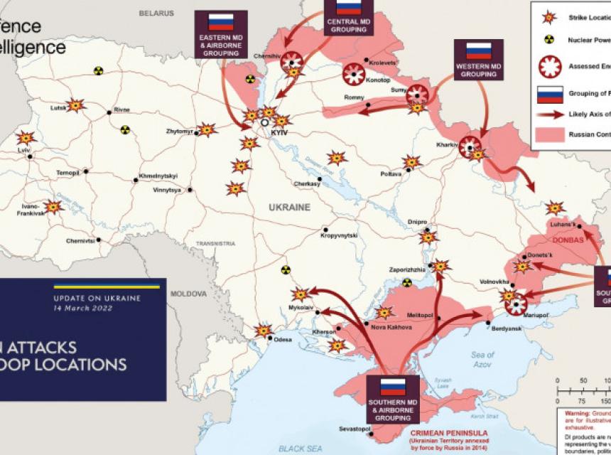Ministarstvo odbrane Velike Britanije objavilo je novu mapu napada ruskih vojnih snaga na Ukrajinu.