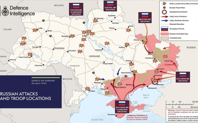 Britansko ministarstvo odbrane objavilo je novu dnevnu kartu ratnih događaja u Ukrajini.