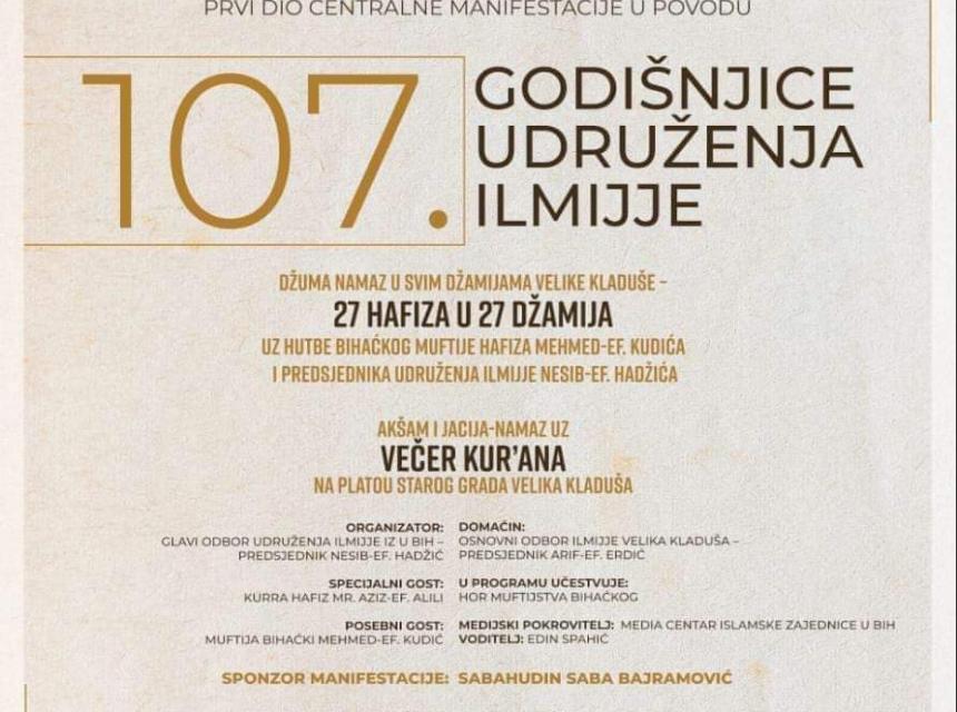 Pozivamo sve ljubitelje lijepog učenja da u petak, 20.9.2019. godine budu dio ove nesvakidašnje svečanosti u organizaciji glavnog odbora udruženja Ilmijje BiH, a domaćin ovog događaja je osnovni odbor Ilmijje Velika Kladuša.