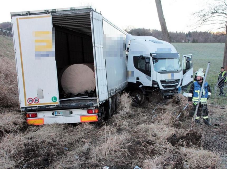Otprilike 500 metara prije skretanja Frasdorf, iz nepoznatog razloga skrenuo je desno, sletio s ceste i završio u jarku uz autoput. Vozač kamiona nije povrijeđen, ali je na njegovom vozilu, zaštitnoj ogradi na cesti i ogradi koja štiti od divljači uz autoput načinjena velika materijalna šteta.
