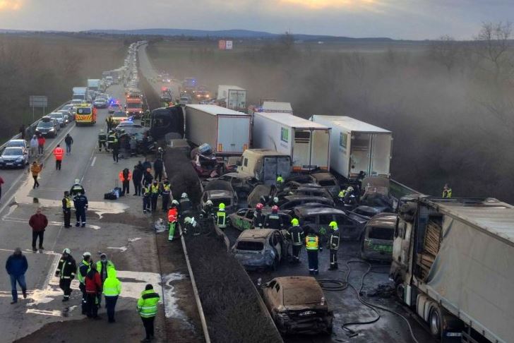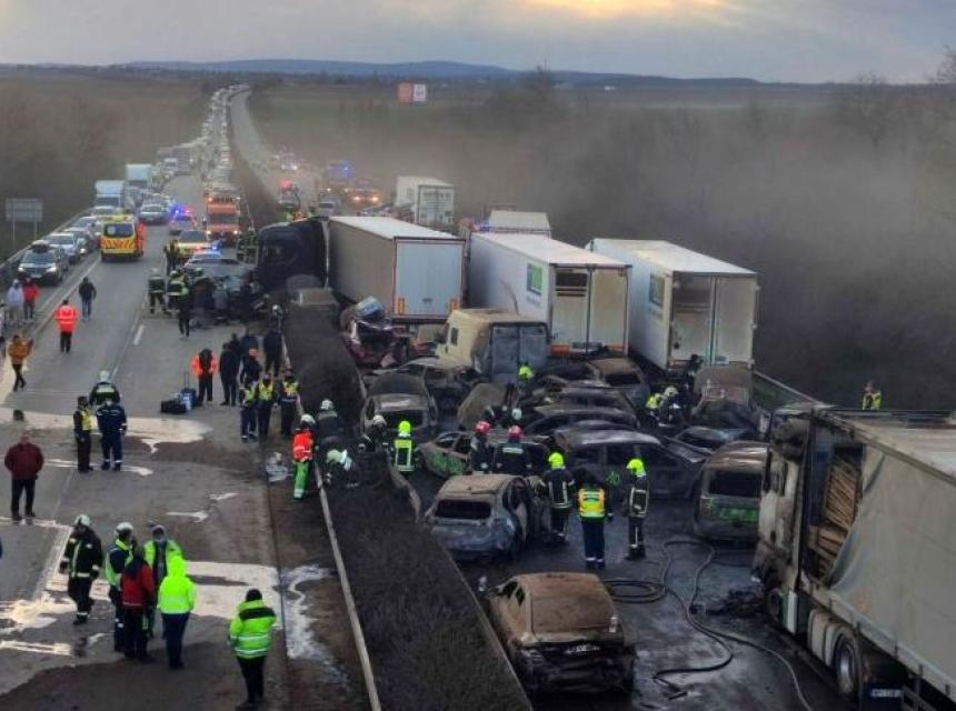 Na 26 kilometru autoputa M1 kod Herceghaloma, u okrugu Pešta, u Mađarskoj došlo je do lančanog sudara pet kamiona i 37 automobila u kome je više desetina osoba povrijeđeno, od kojih su neki životno ugroženi, saopštila je policija u Budimpešti. Jedan od kamiona koji su učestvovali u udesu odbačen u suprotnom smjeru, pa je autoput zatvoren u oba smjera.
