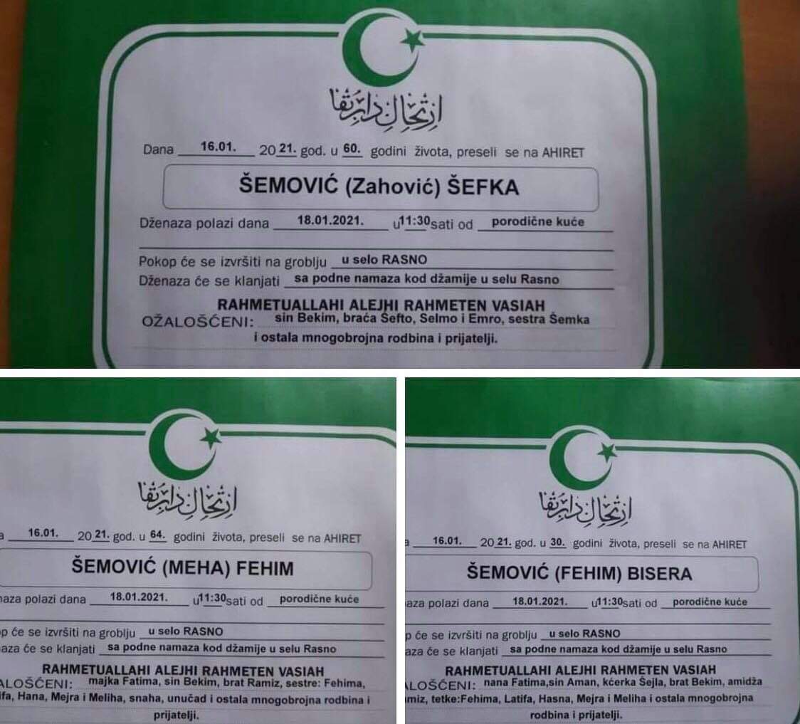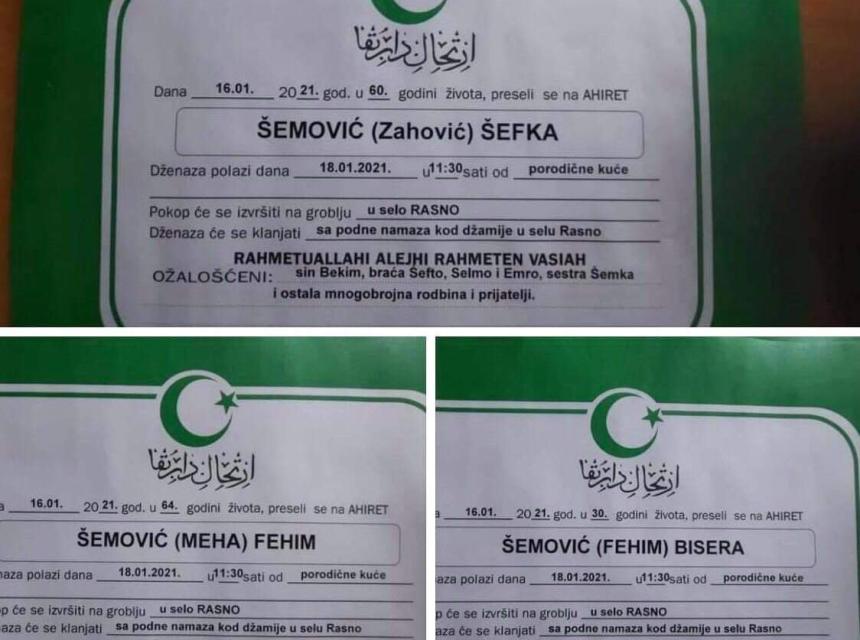 Danas je u Sjenici posebno tužan dan. Nezapamćena se tragedija desila u kojoj su život izgubile tri osobe, a nekoliko njih ranjeno. Klanjane su tri dženaze, ocu, majci i njihovoj kćeri.