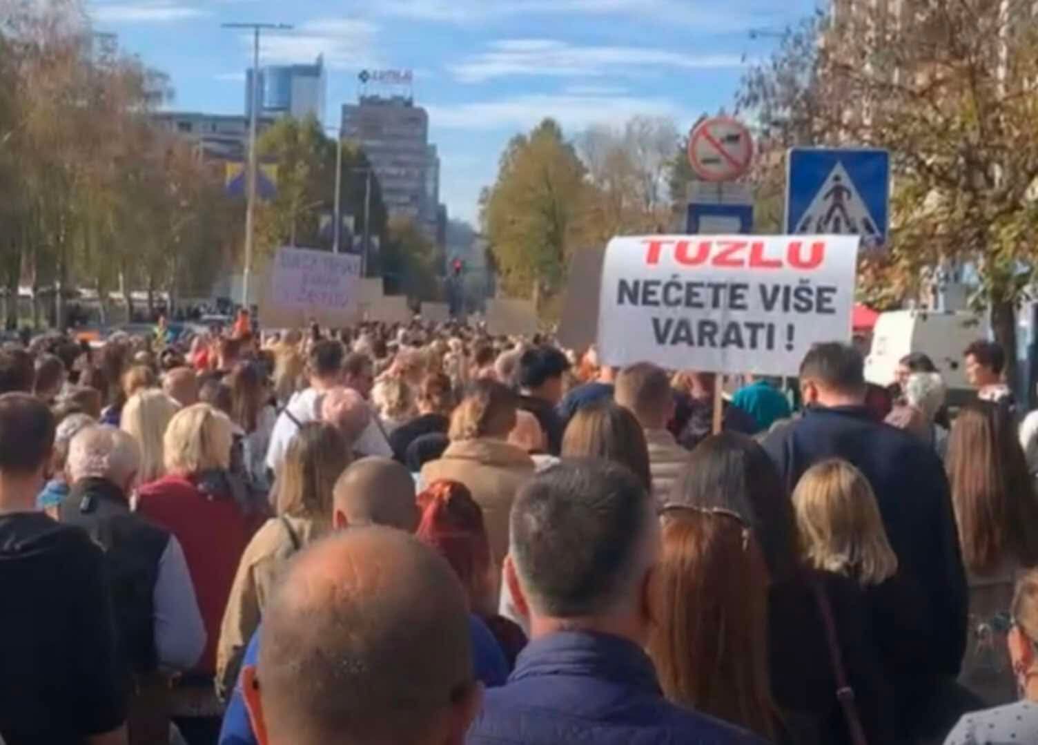 Protestna šetnja započela je ispred Doma za djecu, a građani su se zatim uputili prema Tužilaštvu Tuzlanskog kantona i Upravi policije MUP-a TK. Okupljeni su nosili transparente, uzvikivali parole i slali jasne poruke vlastima.