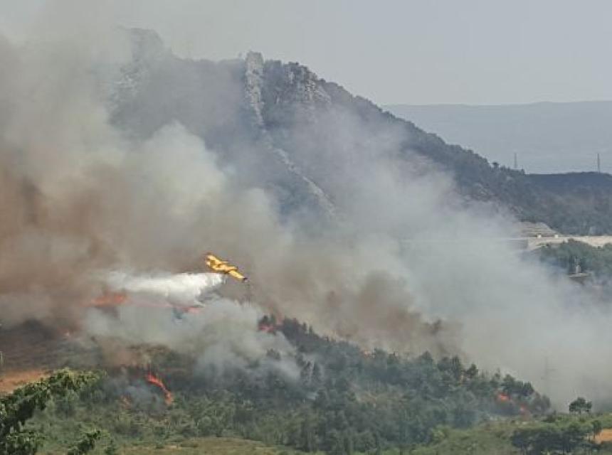Iako se požar bližio naselju Klis-Kosa, ipak ne ugrožava kuće. Gase ga tri kanadera i dva Airtractora.