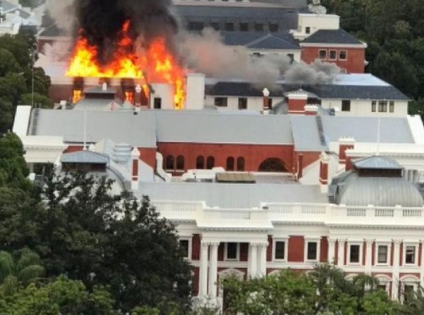 Veliki požar izbio je rano jutros na krovu zgrade parlamenta u Kejptaunu u Južnoafričkoj Republici. Na snimcima koji su se pojavili na društvenim mrežama, može se vidjeti kako vatra guta krov zgrade parlamenta dok vatrogasci pokušavaju da ugase požar.