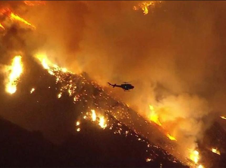 Usljed požara koji se brzo širi sjeverno od Los Angelesa naređena je evakuacija mještana i studenata lokalnog koledža Tome Akvinskog, saopštili su zvaničnici.