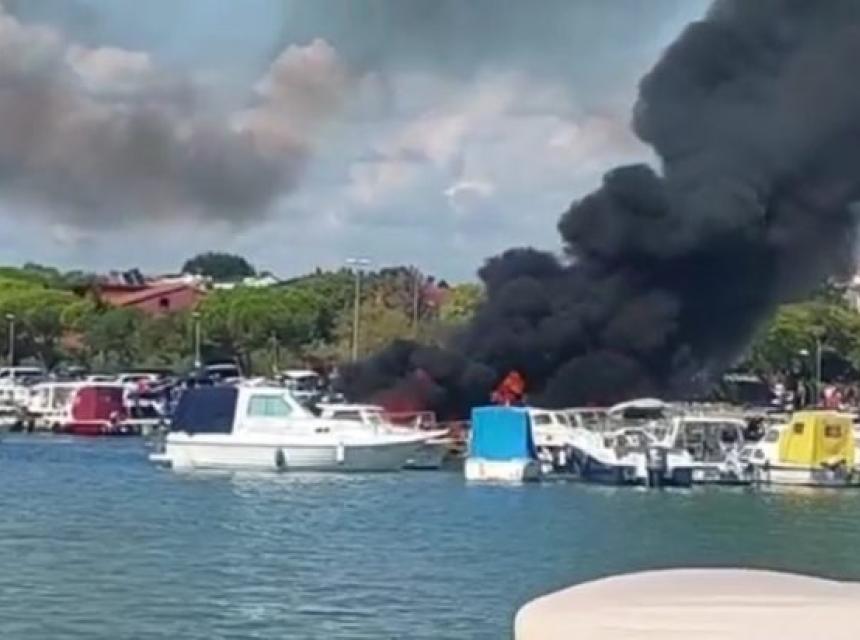Prema prvim neslužbenim informacijama požar je buknuo na jednom od glisera, te vatrena stihija uskoro zahvatila i ostala plovila, piše Glas Istre.