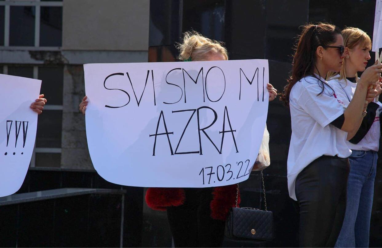 Demonstranti su nosili transparente "Siguran porođaj je političko pitanje", "Svi smo mi Azra", "Ovdje je i porod preko štele", "Porodilište ne smije biti sinonim za strah", "Beba nije jednako koverta", a okupljeni su čitali potresna pisma porodilja iz cijele Bosne i Hercegovine te pozvali sve zdravstvene ustanove u državi da pruže najbolji mogući tretman svakoj trudnici.