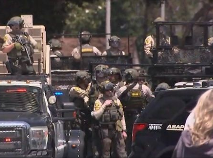 Tokom subotnjih protesta, pripadnici sigurnosnih snaga u opremi za razbijanje demonstracija suočili su se sa stotinama demonstranata u području Paramount na jugoistoku Los Anđelesa, bacili su suzavac na ulicu prekrivenu prevrnutim kolicima za kupovinu, dok su gomile pozivale agente Imigracijske i carinske službe (ICE) da napuste njihov grad.