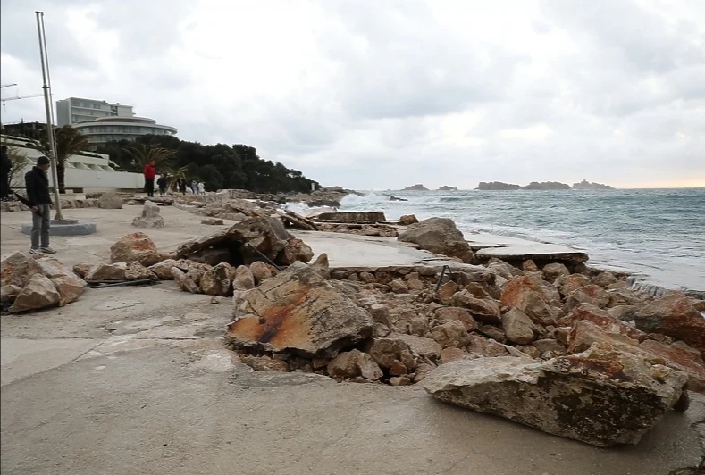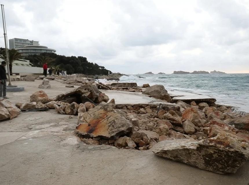 Veliki valovi i vjetar su raznijeli betonsku rivu, izbili kamen i teške komade betona raznosili po ovom dijelu Dubrovnika.