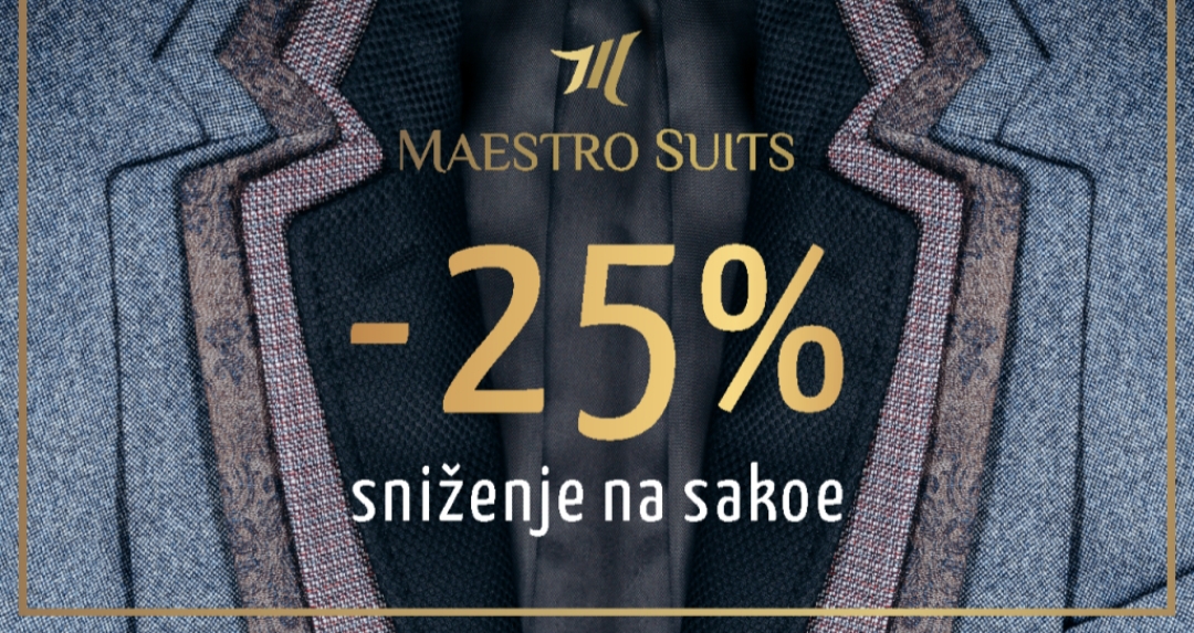 Svi sakoi u ponudi Maestro Suits su na velikom sniženju od 25%.