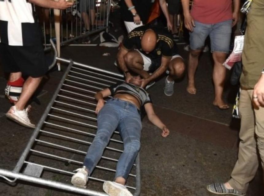 Kao što se može vidjeti na fotografiji, među navijačima ima povrijeđenih.