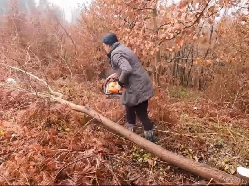 kako mjesečna primanja ove porodice iznose samo 147 KM Sanela je primorana motornom pilom zarađivati za život svoje djece koja idu u školu.
